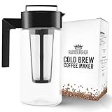 - ✅ DURCHDACHTES DESIGN: Filter: Der feinsiebige Infuser stellt sicher, dass nur die erwünschten Aromen des Kaffees extrahiert werden. Gerät: Der Behälter aus Kunststoff hält große Temperaturunterschiede aus und ist stoßfest. Deckel: Das wasserdicht verschließbare Gewinde hält den konzentrierten Kaffee bis zu 2 Wochen frisch. Der Coffee Maker lässt sich auch horizontal aufbewahren. Antirutschgriff: Der rutschfeste Silikongriff sorgt für sicheren Halt beim Ausgießen.