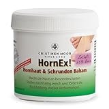 - Hornhaut & Schrunden Balsam mit 25 % Urea für zuverlässige Reduzierung von Hornhaut an Füßen, Ellenbogen, Schwielen an den Händen; enthält Jojobaöl, Teebaumöl und Latschenkieferöl und verhindert damit gleichzeitig das Ansiedeln von Mikroben. HornEx! Hornhaut & Schrunden Balsam wurde extra für die stark verhornte Haut entwickelt und geprüft.