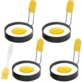 Eierformer Eierring Spiegelei Eierform Form Eierringe für Die Pfanne mit Silikon Bürste & Griff für Brat Eier, 4 Pack Runde