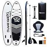 - Perfekte Größenkombination: Hergestellt aus doppelseitigem Sandwich-Gewebe und hochdichten Fallstichen, um das Board stabiler zu machen, aber das Gewicht beträgt nur 11,5 kg. 81,3 cm in der Breite sorgt für mehr Auftrieb und ausreichend Platz zum Stehen oder Sitzen. Es hat die ideale Größe für viele SUP-Paddler. Die Dicke beträgt 15,2 cm, wird sich im Wasser auch unter Gewicht nicht leicht verformen, unser SUP-Board bietet stabileres Fahren und bessere Leistung.