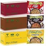 Yum Yum ist bekannt für sein breites Sortiment an Instant-Nudeln, die in verschiedenen Geschmacksrichtungen und Stilen erhältlich sind. Diese Optionen reichen von traditionellen asiatischen Aromen wie Huhn und Garnelen bis hin zu moderneren Varianten wie Curry und Kimchi. Die Vielfalt an Geschmacksrichtungen macht Yum Yum zu einer beliebten Wahl für Liebhaber asiatischer Nudelgerichte, da sie sowohl klassische als auch kreative Optionen bieten.